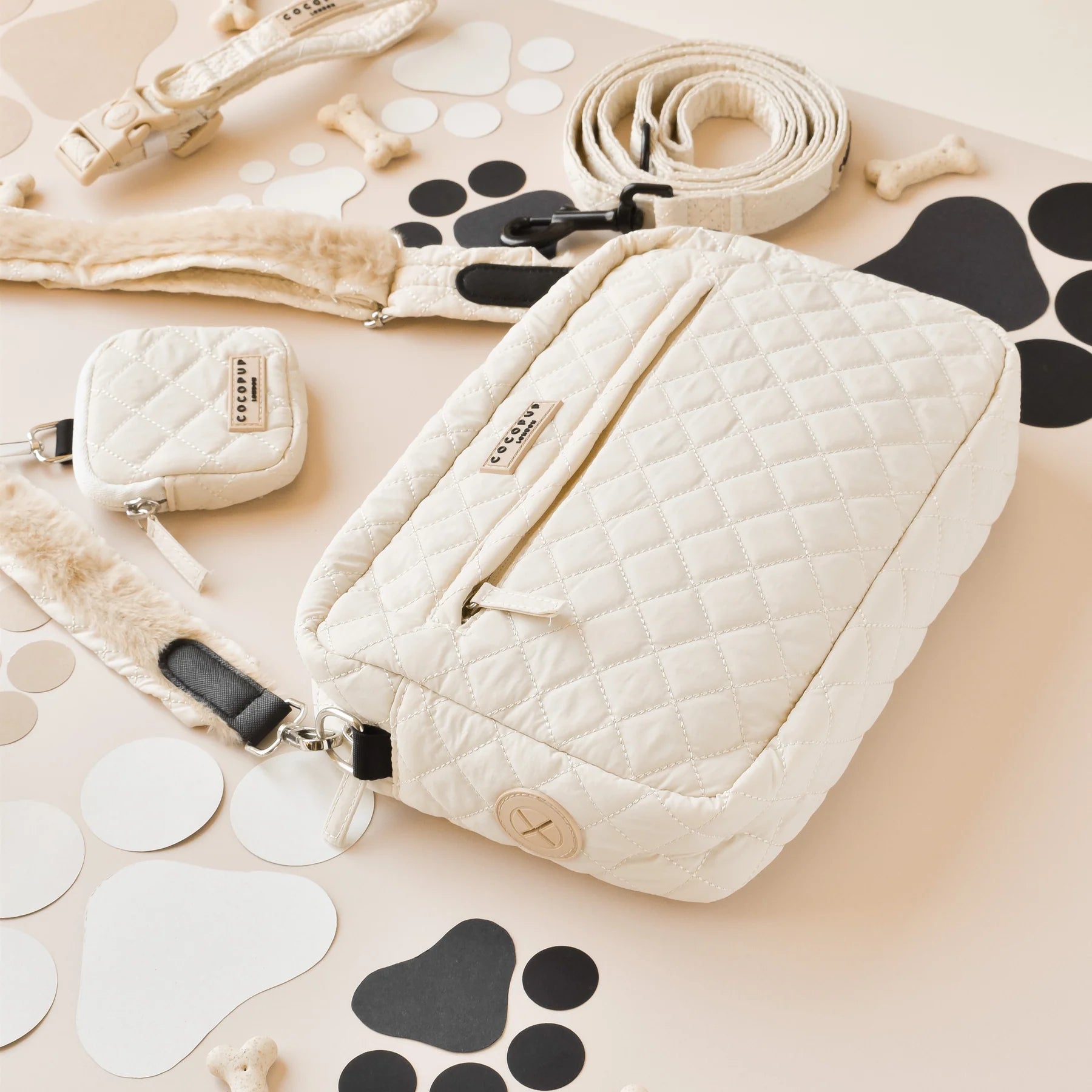 Large Dog Walking Bag Cream Quilted
