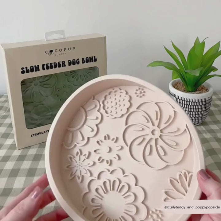 Flowers sílikon-slow feeder hundaskál – skemmtileg, örugg og hagnýt. Sérstaka hönnunin með upphækkuðum mynstrum skapar hindranir sem fá hundinn til að borða hægar og meðvitað. Anti-slip grip tryggir að skálin haldist á sínum stað og auðvelt er að þrífa hana (má fara í uppþvottavél).